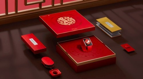 顾名思义,OPPO Watch故宫新禧版是跟故宫博物院联名的一款智能手表,它每一处颜色和图案的选取,甚至是产品命名都经过了OPPO的深思熟虑,与故宫元素完美融合。“金碧辉煌紫禁城,红墙宫里万重门”,这七律诗里的“金”和“红”,共同组成了这套联名的整体色调,贯穿包装及产品本体。以宫墙的朱砂红作为基调,铺满整个盒子,左上角有OPPO和故宫博物馆的标识,亮明身份。底部标注着 OPPO Watch故宫新禧版,让人一眼就能看出盒子里藏的是什么“宝物”。
