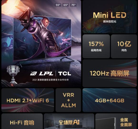 TCL Mini LED量子点智屏Q10E是今年四月份才推出的新品,也是TCL新一代Mini LED电视的代表,也是TCL助推的高端机型。这款电视产品汇聚了TCL最前沿的电视技术,而且各方面参数表现都非常出色,同时也是一款主打游戏性能的电视,是游戏爱好者的首选产品。