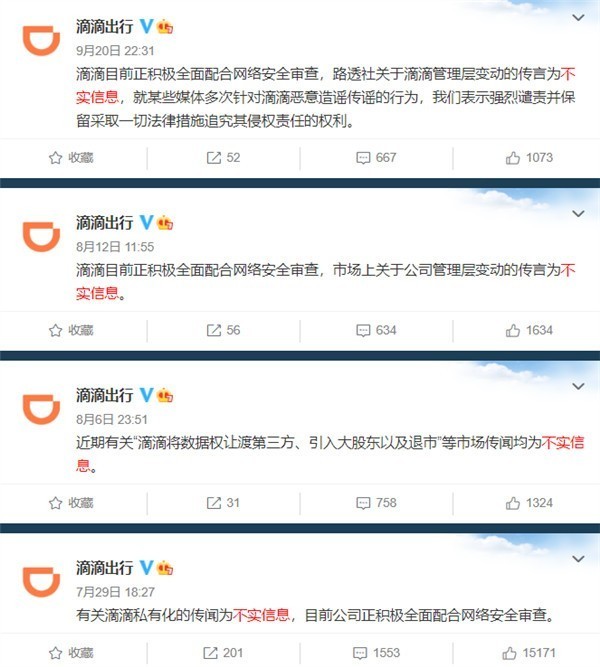 此前,相关部门勒令滴滴出行APP整改,目前已经在APP市场下架。而目前滴滴也发出公告称,近日盛传的“公司管理层变动”的事宜为不实信息,内部无高层大变动。