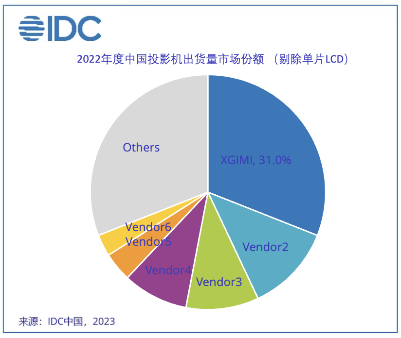 值得注意的是,极米的成功,并非依靠低端低价。以2022年为例,IDC数据显示,在中高端投影机市场,极米保持出货量第一,市场份额高达31%,是第二名到第四名的总和。