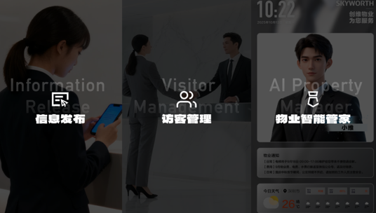 在交互体验上,不同性格人设可适配多元需求——幽默型人设缓解办事繁琐感,专业型人设强化物业靠谱形象,多语言能力满足外籍业主需求,让深度互动更贴合用户期待。同时,其在访客服务中可智能规划最优路线、动态指引方向,搭配 “无感通行” 实现沉浸式科技体验,既降低物业人工沟通成本,又以专业高效的服务质感,重新定义高端楼宇服务标准,助力物业完成服务品质与品牌价值的双重升级。