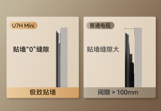 虽然“超大屏”和“0贴墙”成为了新的趋势,但是当消费者期望它能像一幅真正的壁画那样完美融入家居时,传统的结构与散热设计已无法满足要求。传统结构的电视哪怕做到“贴墙”,其热量堆积而产生的“热岛效应”会对电视和墙体造成伤害。抑或是要求电视和墙面留有足够的散热空间,这样的空间限制让“0贴墙”的视觉美学难以实现。由此,“贴墙”与“散热” 成为了行业公认的、难以兼得的“悖论”。