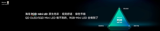 作为全球显示技术的重要突破,海信RGB-Mini LED技术的落地,终结了行业长期以来在画质、健康、能效之间的取舍困境。此前,传统QD-Mini LED、SQD-Mini LED等技术因采用单色背光方案,需通过量子点激发、滤光等二次转换实现色彩呈现,不可避免地出现高亮色彩冲淡、白色光晕明显、能耗偏高、有害蓝光占比大等问题,即便增加控光分区数量,也难以从底层解决这些痛点。海信E7S Pro搭载的全新RGB-Mini LED技术体系,由玲珑真彩背光与信芯AI画质芯片H7构成核心双引擎,通过对光源、算力、光学架构的全链路重构,实现了“始于画质、合于能效、归于健康”的行业突破。